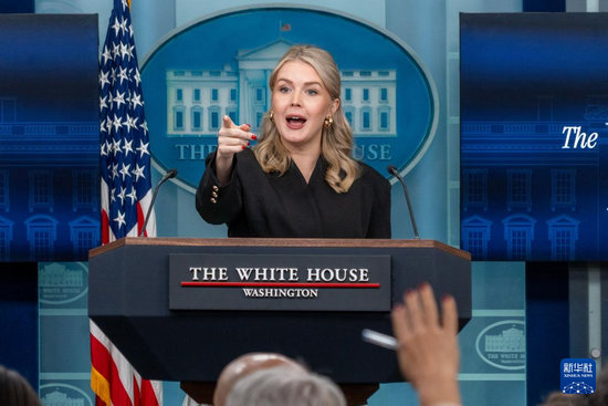 12月11日,在美國(guó)首都華盛頓白宮,白宮新聞秘書卡羅琳·萊維特出席記者會(huì)。 新華社發(fā)(李源清攝)