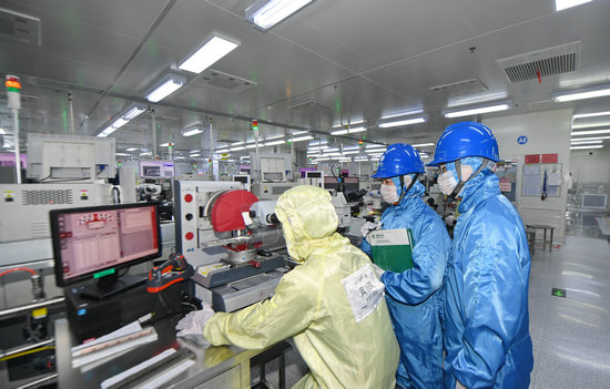 ▲國(guó)網(wǎng)金堂縣供電公司上門(mén)服務(wù)半導(dǎo)體企業(yè),助力企業(yè)開(kāi)足馬力生產(chǎn)。(陳翔 攝)