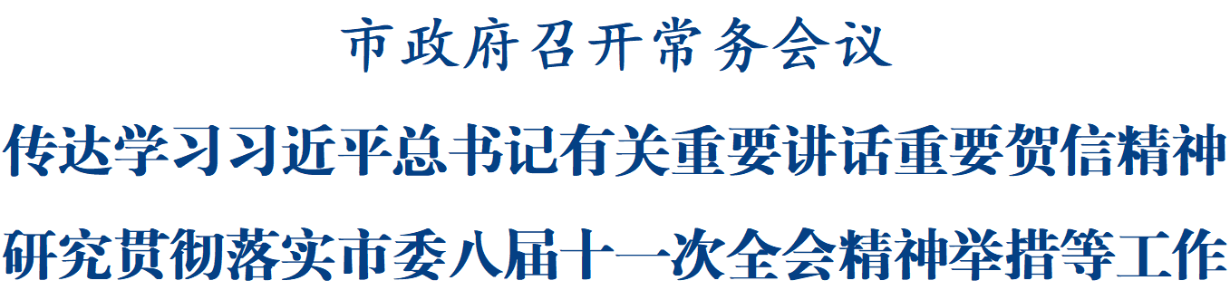 12月15日,市政府召開第124次常務會議,傳達學習習近平總書記有關重要講話重要賀信精神,研究貫徹落實市委八屆十一次全會精神舉措等工作。市委副書記、市長李云主持會議并講話。