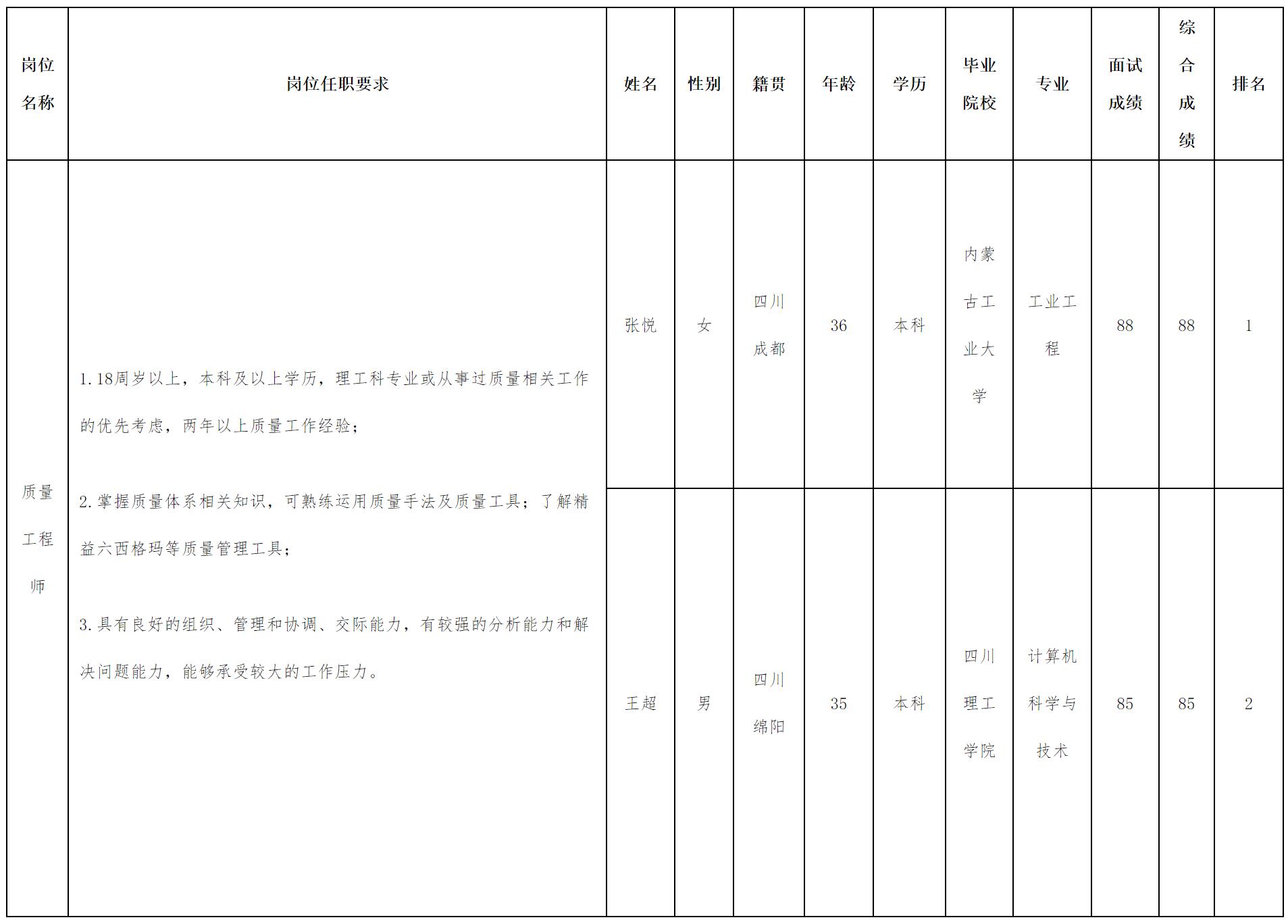 根據(jù)四川華豐科技股份有限公司發(fā)布的招聘公告及招聘相關(guān)規(guī)定,現(xiàn)將測(cè)試成績(jī)予以公示。