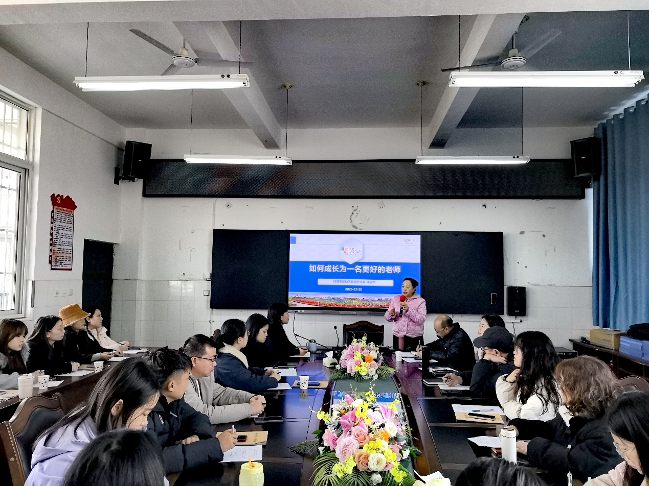 本次培訓特邀游仙區(qū)教研室副主任李筱華擔任主講嘉賓,以《如何成長為一名更好的老師》為題,結(jié)合自身的成長經(jīng)歷和豐富的教學實踐經(jīng)驗,通過案例分析、互動研討、現(xiàn)場示范等多樣化形式,深入淺出地分享教學技巧與育人心得。培訓過程中,青年教師們認真聆聽、積極思考,踴躍參與交流討論,在思維碰撞中汲取經(jīng)驗,收獲滿滿。