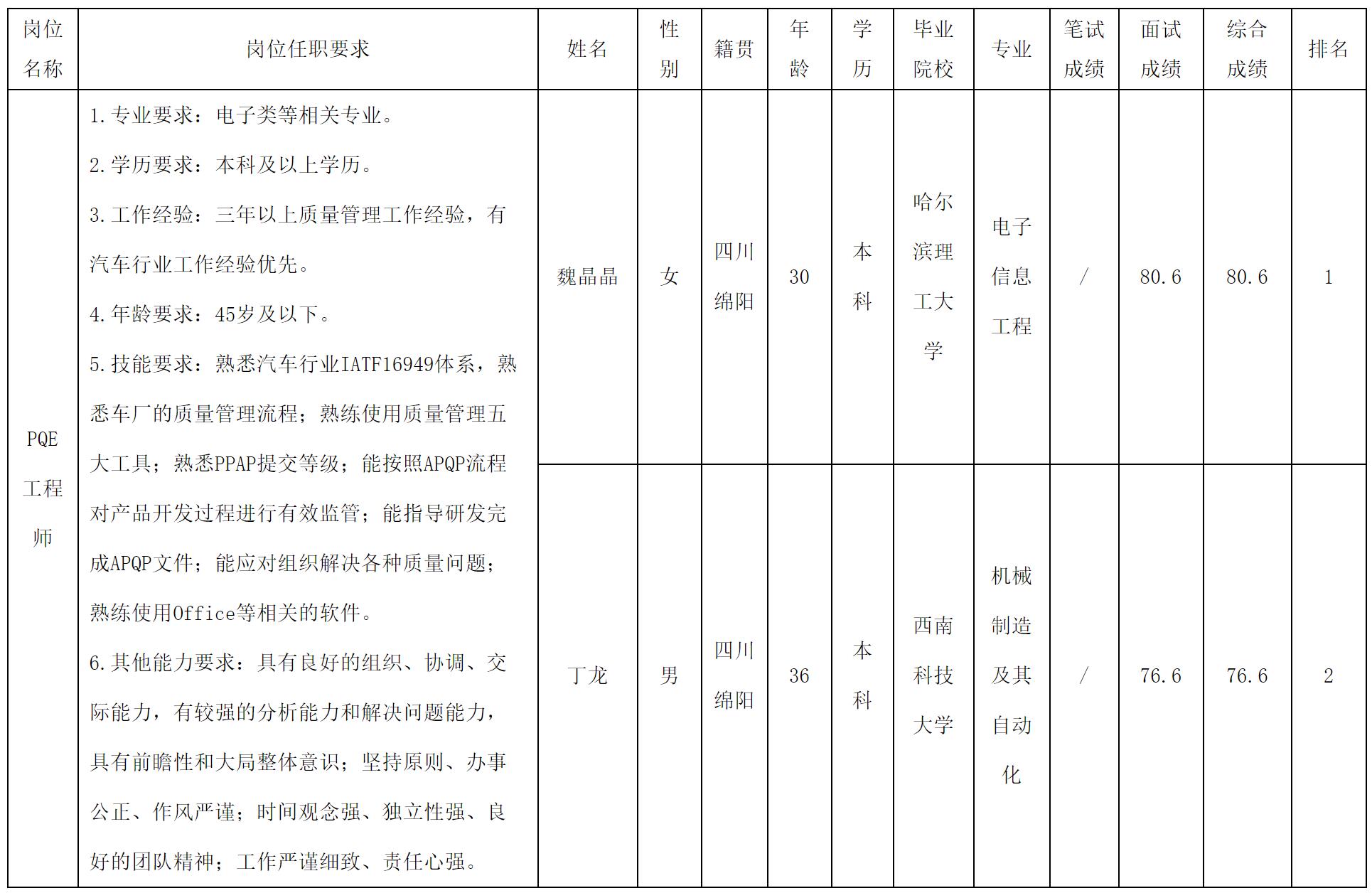 根據(jù)四川愛創(chuàng)科技有限公司發(fā)布的招聘公告及招聘相關(guān)規(guī)定,現(xiàn)將測試成績予以公示。