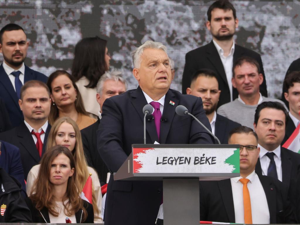 10月23日,匈牙利總理歐爾班在首都布達(dá)佩斯舉行的一場集會上講話。新華社發(fā)(弗爾季·奧蒂洛攝)