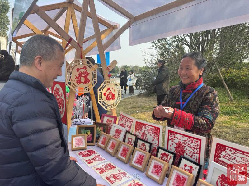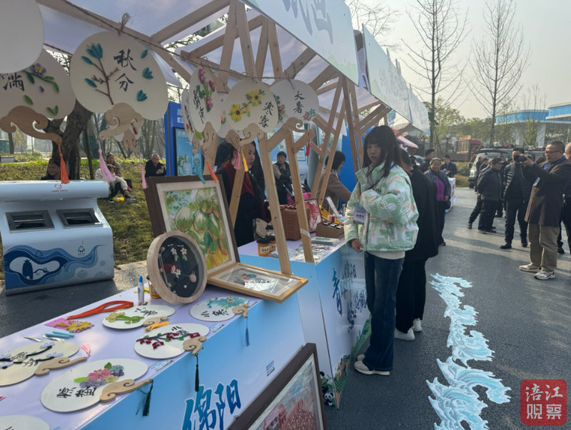 啟動(dòng)儀式外,鄉(xiāng)村旅游嘉年華體驗(yàn)區(qū)人頭攢動(dòng)。剪紙攤前,一襲傳統(tǒng)服飾的女士靜守著滿架紅艷,風(fēng)來,剪紙上的熊貓、人物悄然輕曳,游客舉起“熊貓抱竹”,笑嘆“比照片鮮活多了”;葫蘆攤前,一位男士摩挲著刻有“錦繡天府”的大葫蘆,“烙畫、漆藝”橫幅下,木雕師傅正打磨“綠繞天府”主題木雕。