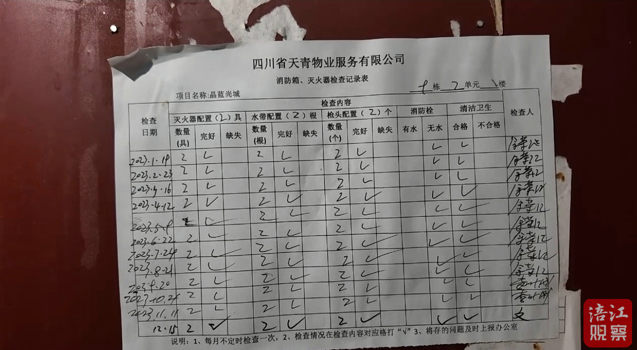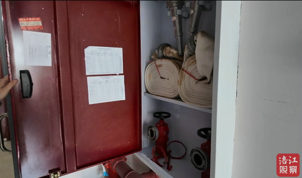 記者實(shí)地查驗(yàn)發(fā)現(xiàn),該小區(qū)消火栓內(nèi)的消防水管嶄新,無使用痕跡,打開后卻沒有水流。而消火栓上張貼的物業(yè)巡查臺賬顯示,早在2023年,該問題已被標(biāo)注。