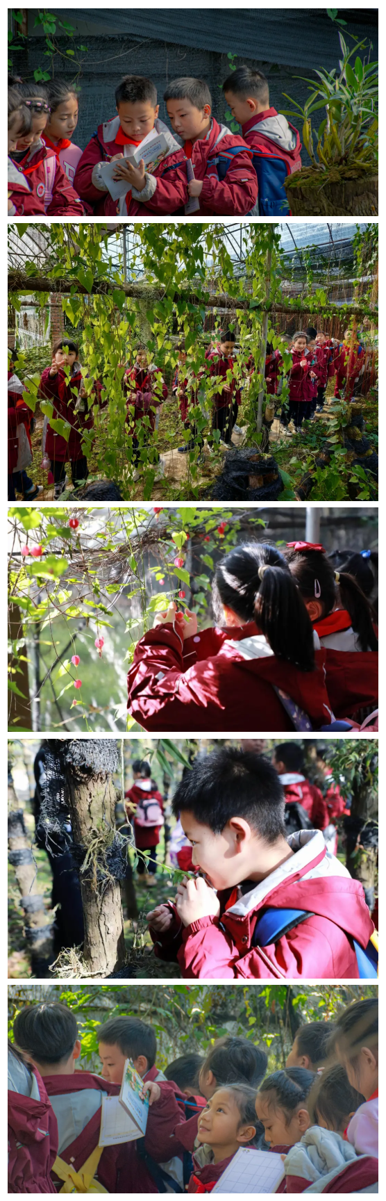 “石斛原來不是長在土里的!”一位同學(xué)在參觀石斛基地時驚奇地發(fā)現(xiàn)。在老師的講解下,同學(xué)們沿著石斛的生長軌跡,完整認(rèn)識了這味“植物黃金”的生命周期。透過茂密的種植棚,同學(xué)們仔細(xì)觀察石斛的生長環(huán)境,記錄其獨(dú)特特性,原來中醫(yī)藥的第一課就從“識材”開始。