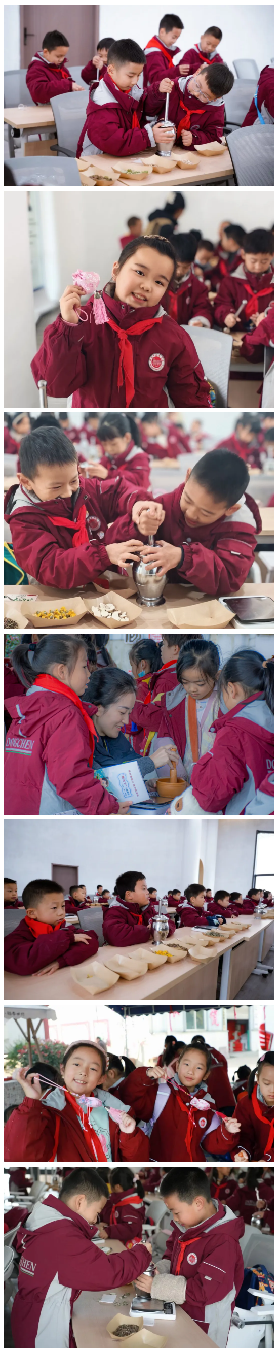 “我的香囊里有艾葉和茉莉!”同學(xué)們學(xué)習(xí)不同藥材的藥性,并根據(jù)所學(xué)知識,親手配制獨(dú)一無二的中醫(yī)藥香囊。一折一疊間,不僅包裹了藥材,更包裹了對健康的美好祝愿。