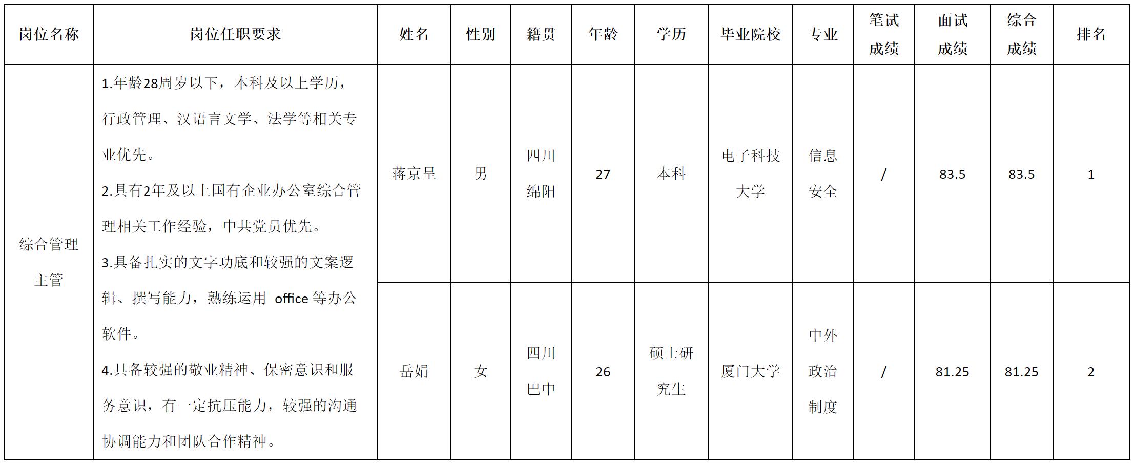 根據(jù)四川長虹電子控股集團(tuán)有限公司發(fā)布的招聘公告及招聘相關(guān)規(guī)定,現(xiàn)將測試成績予以公示。