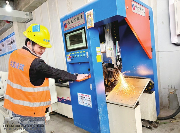 構(gòu)件加工區(qū),工人操控數(shù)控三維激光切管機(jī)。 記者 鄧勇 攝