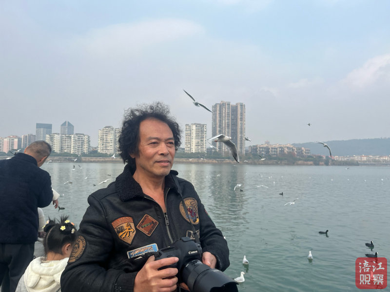 當(dāng)時(shí)三江半島光線較暗,仍有少數(shù)游客在觀賞海鷗。有群眾嘗試用三腳架、燈架等物品施救,但未能成功。“我一看這情況,心里就想:我有能力,必須下水!” 20秒內(nèi),他迅速脫掉外衣褲,“撲通”一聲跳入江中。