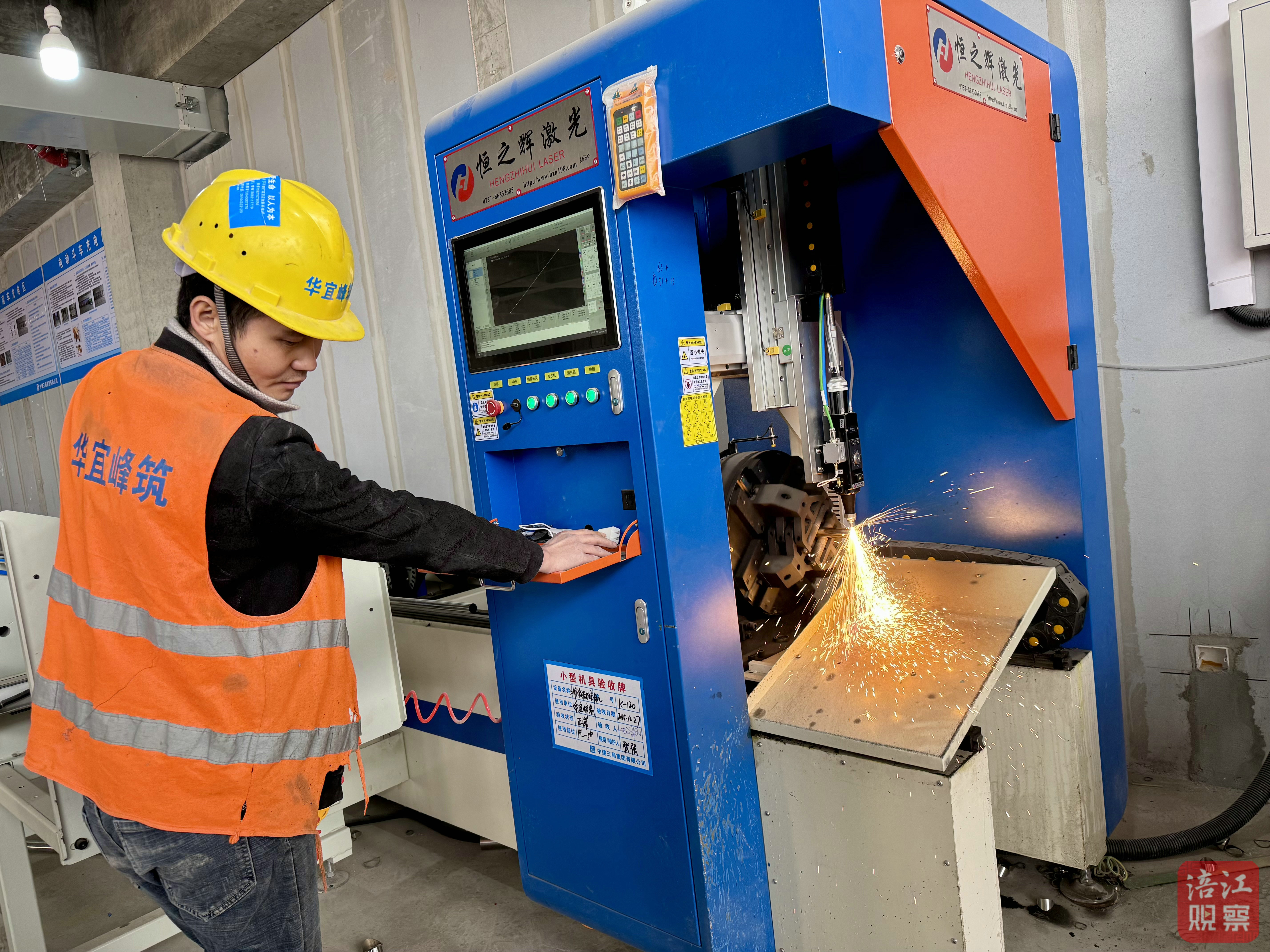 ◆在構(gòu)件加工區(qū),數(shù)控三維激光切管機(jī)正精準(zhǔn)加工樓梯欄桿等弧形構(gòu)件。相比傳統(tǒng)人工切割容易產(chǎn)生的平面誤差與接縫空隙,該設(shè)備不僅可實(shí)現(xiàn)三維曲線的高精度切割,保障構(gòu)件嚴(yán)絲合縫,還能適配多種管材坡口及復(fù)雜節(jié)點(diǎn)的加工需求,從源頭上提升建筑質(zhì)量與使用安全。