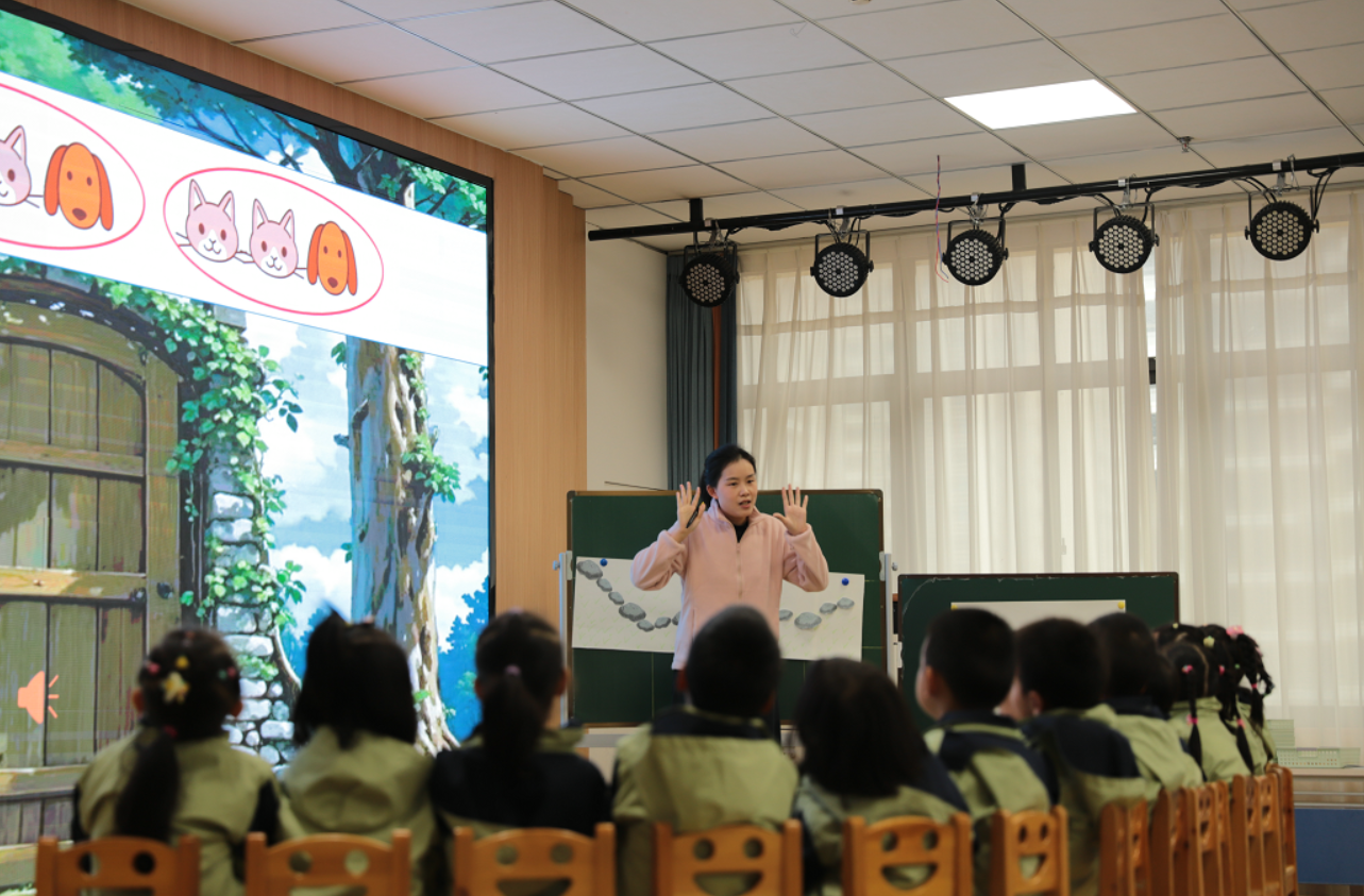 活動中,七位教師立足幼兒年齡特點與發(fā)展需要,巧妙設(shè)計,精心組織。課程內(nèi)容涵蓋語言、科學(xué)、藝術(shù)、健康等多個領(lǐng)域,充分體現(xiàn)了“以幼兒為本”的教育理念。教師們嫻熟運用多媒體技術(shù)及多樣化教具,創(chuàng)設(shè)生動有趣的情境,通過游戲化、探究式的教學(xué)方式,激發(fā)幼兒主動參與和深度思考。如《尋找消失的寶石王冠》數(shù)學(xué)活動,引導(dǎo)幼兒在闖關(guān)游戲中輕松掌握數(shù)學(xué)邏輯,體驗運用模式解決游戲問題的樂趣;《測量小偵探》科學(xué)探索,讓幼兒用身邊的自然物探索測量方法,在動手操作中掌握首尾相接的測量方法,建立“量”的概念。