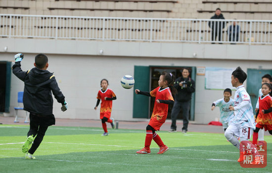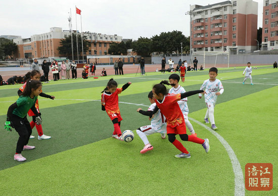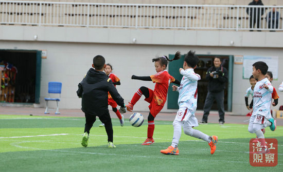 綿陽新聞網(wǎng)訊 12月20日,在綿陽南山中學(xué)雙語學(xué)校的綠茵場(chǎng)上 ,江油女足與綿陽南山中學(xué)雙語學(xué)校足球隊(duì)舉行了一場(chǎng)公益足球賽,雙方球員在球場(chǎng)上奮力拼搏。