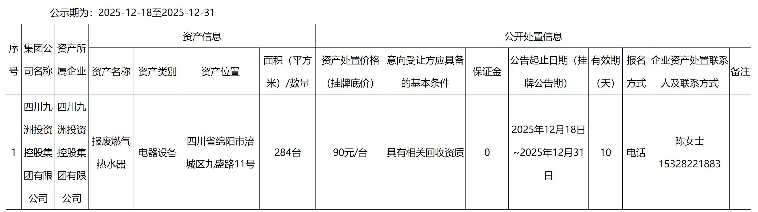 九洲集團科技工業(yè)園區(qū)公寓燃氣熱水器處置公告