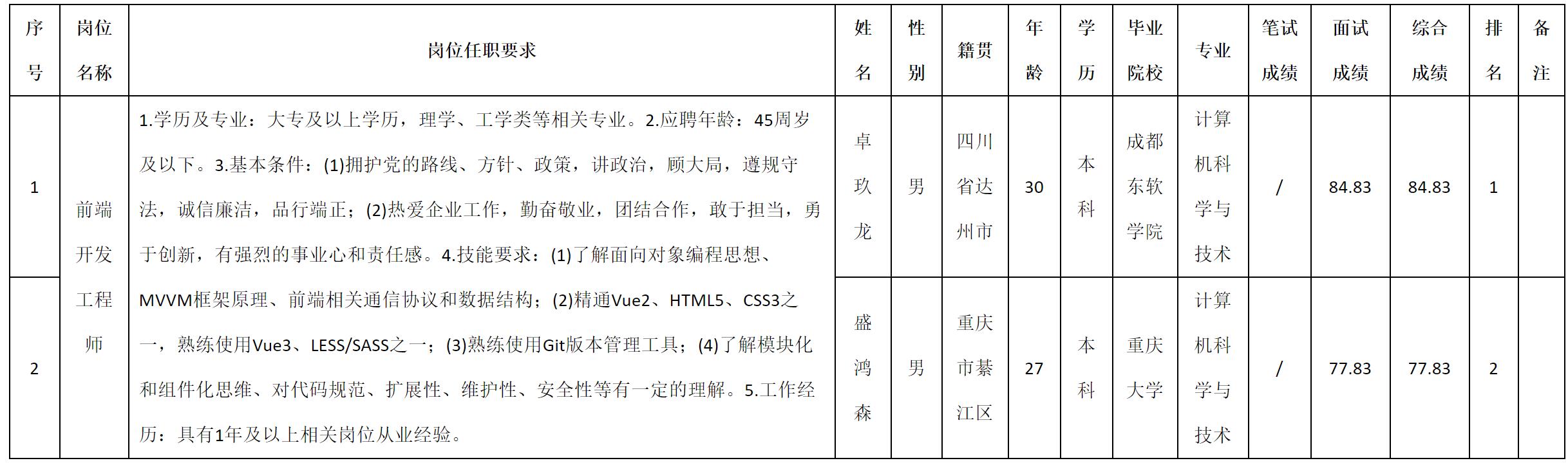 根據(jù)四川九強(qiáng)通信科技有限公司發(fā)布的招聘公告及招聘相關(guān)規(guī)定,現(xiàn)將測(cè)試成績(jī)予以公示。