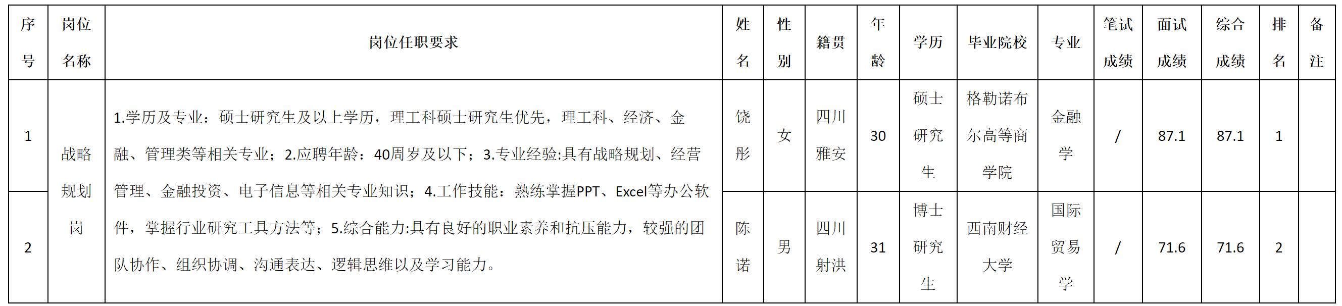 根據(jù)四川九洲投資控股集團(tuán)有限公司發(fā)布的招聘公告及招聘相關(guān)規(guī)定,現(xiàn)將測(cè)試成績(jī)予以公示。