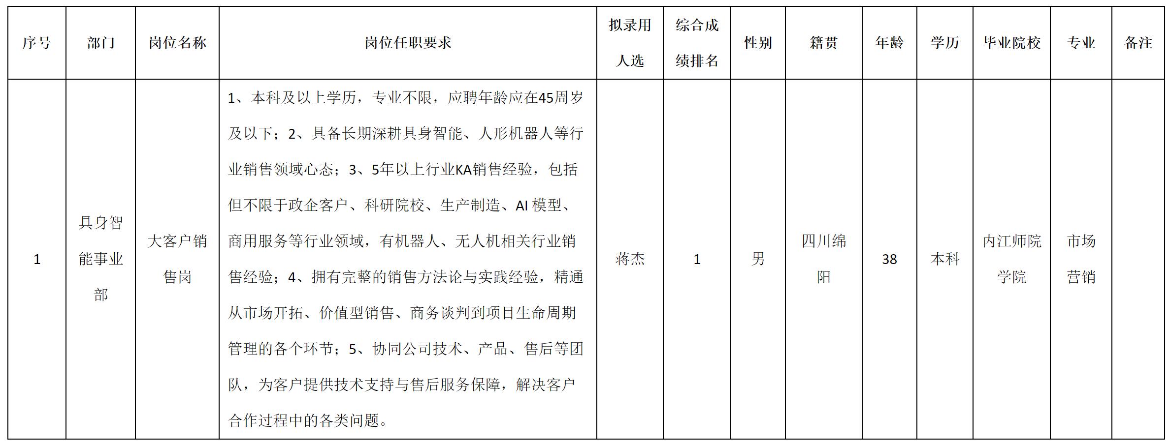 根據(jù)四川九洲投資控股集團(tuán)有限公司軟件與數(shù)據(jù)智能軍團(tuán)發(fā)布的招聘公告及招聘相關(guān)規(guī)定,經(jīng)測(cè)試、考察、體檢等程序,擬錄用蔣杰同志到四川九洲投資控股集團(tuán)有限公司軟件與數(shù)據(jù)智能軍團(tuán)工作,現(xiàn)予以公示,具體情況如下: