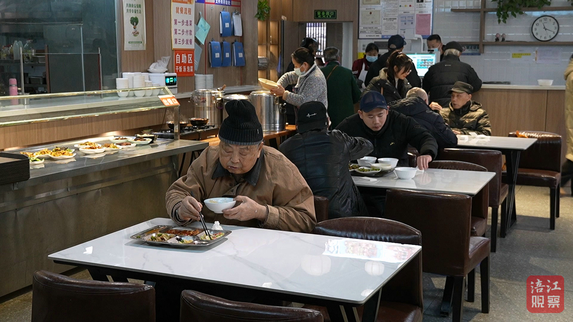 餐廳里煙火氣十足,老人們?nèi)齼蓛梢蛔?,邊吃邊聊,一張張笑臉洋溢著?dāng)下的滿足。