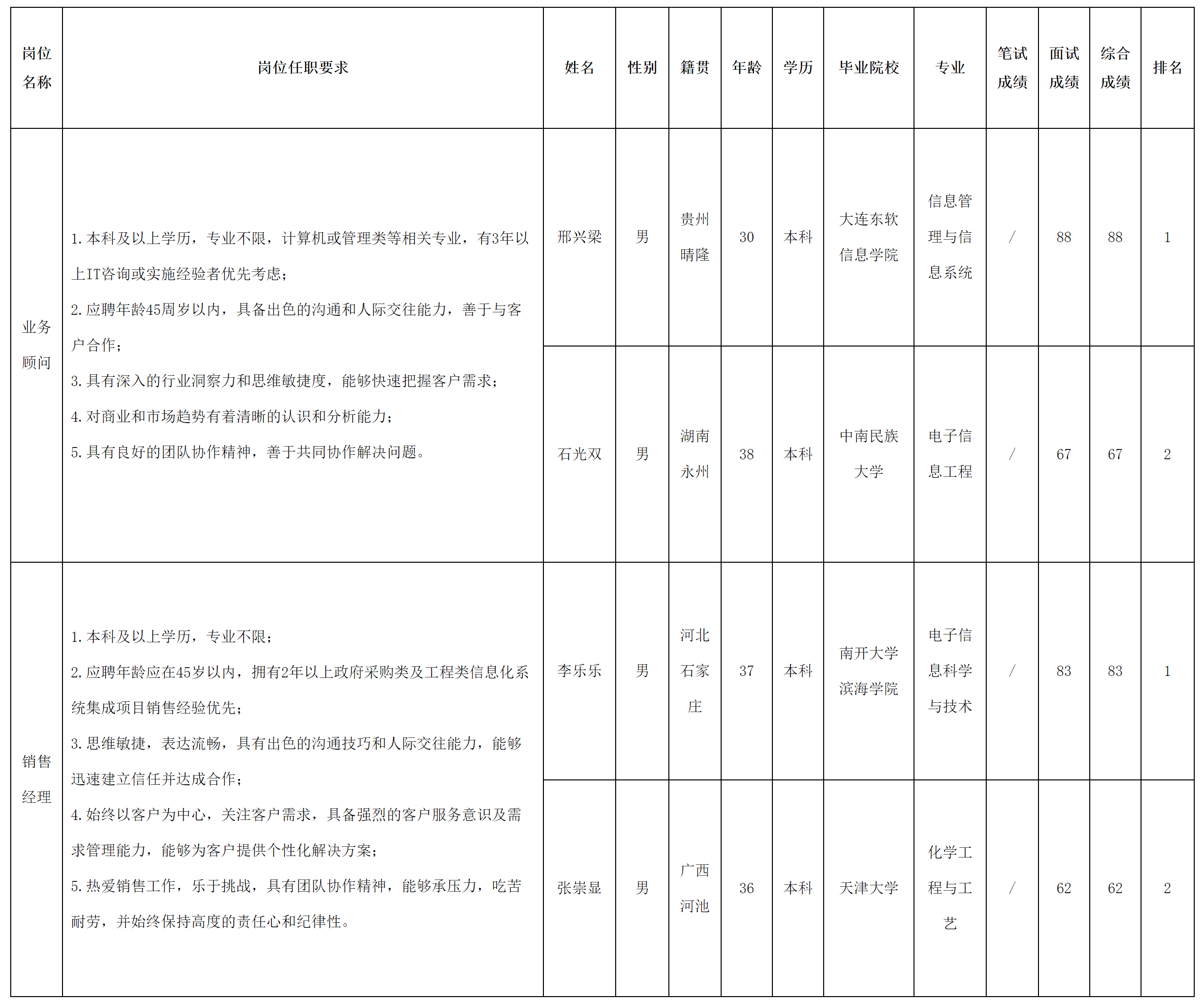 根據(jù)四川虹信軟件股份有限公司發(fā)布的招聘公告及招聘相關(guān)規(guī)定,經(jīng)面試等程序,現(xiàn)將測試成績予以公示。