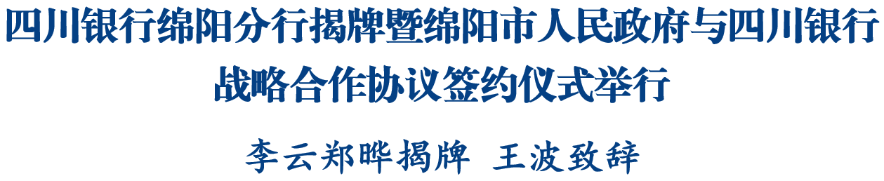 綿陽新聞網(wǎng)訊 12月25日,四川銀行綿陽分行揭牌暨綿陽市人民政府與四川銀行戰(zhàn)略合作協(xié)議簽約儀式舉行。市委副書記、市長李云致辭并與四川銀行黨委書記、董事長鄭曄共同為四川銀行綿陽分行揭牌,四川銀行黨委副書記、行長王波致辭。
