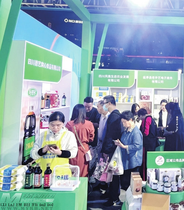 在“綿陽造”寧波行活動(dòng)中,消費(fèi)者爭(zhēng)相選購(gòu)鹽亭“嫘之味”系列產(chǎn)品。