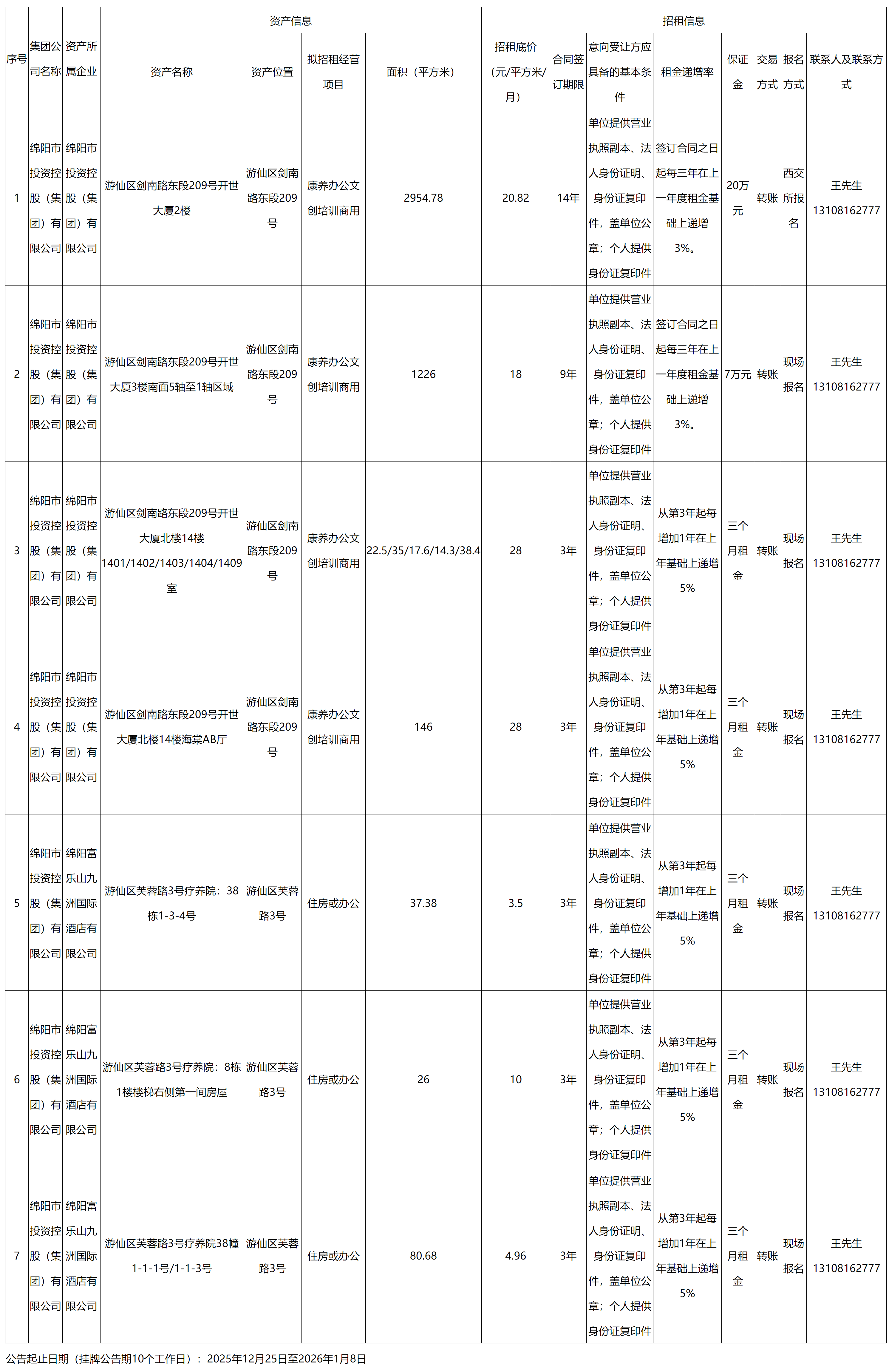 綿陽富樂山九洲國際酒店有限公司資產(chǎn)出租公告