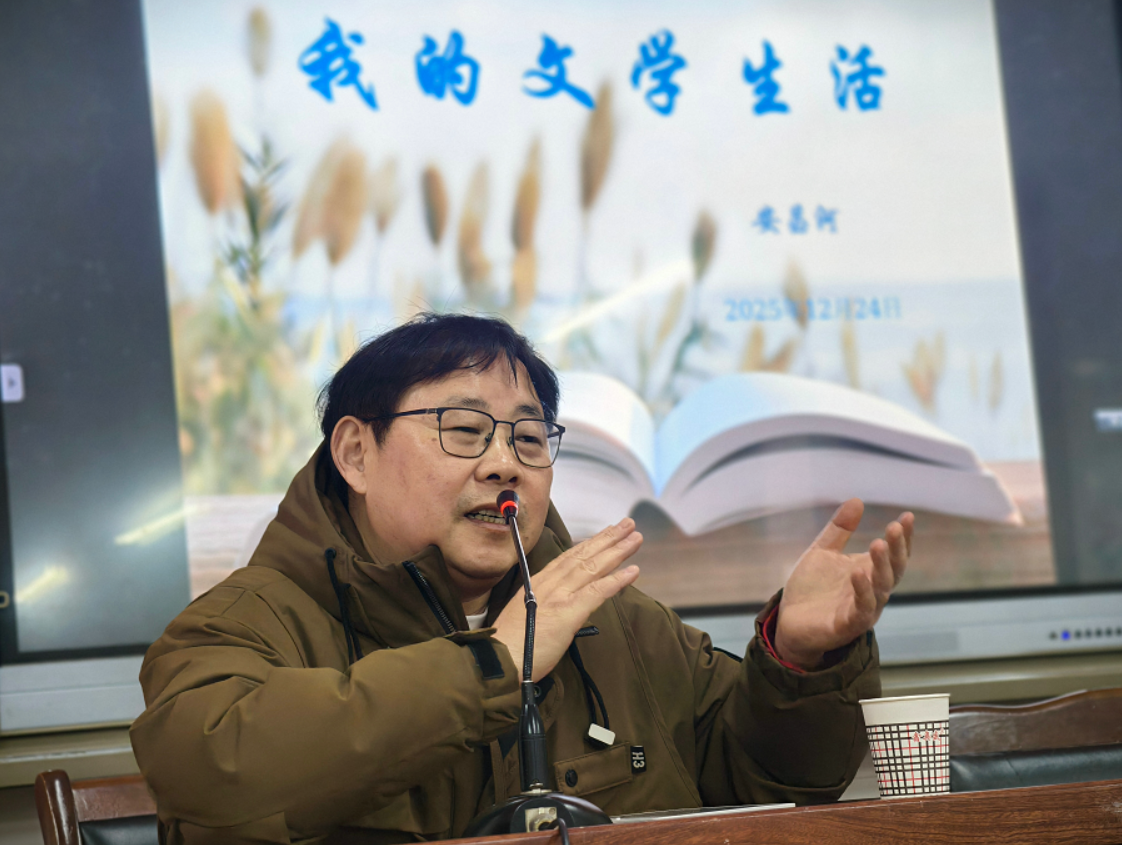 12月24日上午,安州區(qū)第一初級中學(xué)在學(xué)校會議室舉行了以“筆下有故鄉(xiāng),心中有世界”為主題的文學(xué)講座活動。本次活動由該校副校長李雪瑜主持,著名作家安昌河老師受邀主講,與該校師生展開了一場真誠的文學(xué)對話。