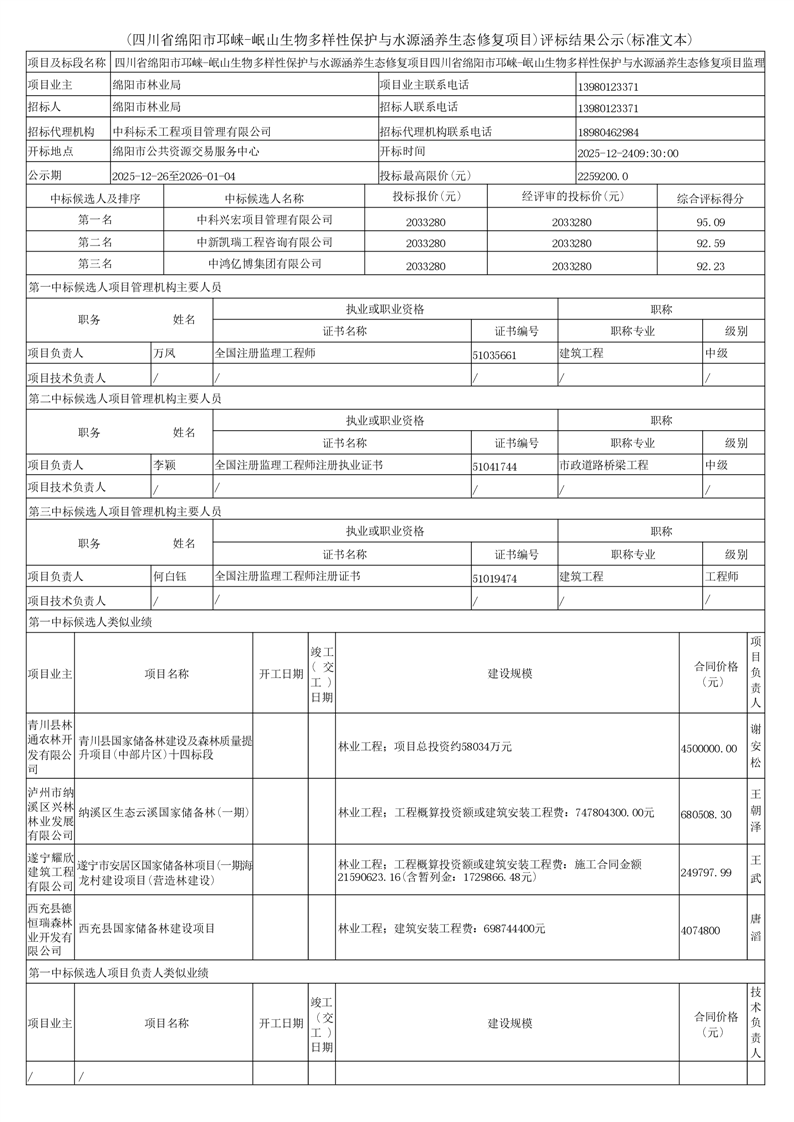 四川省綿陽市邛崍一岷山生物多樣性保護與水源涵養(yǎng)生態(tài)修復項目評標結(jié)果公示