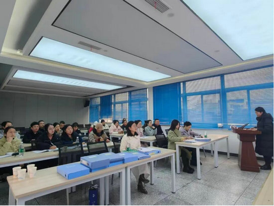 工作匯報(bào)環(huán)節(jié),該校教科室副主任謝琴以“深耕專業(yè)成長(zhǎng)路,青藍(lán)相映綻芳華”為主題,就該校教師專業(yè)成長(zhǎng)體系建設(shè)、青藍(lán)工程實(shí)施成效等相關(guān)工作進(jìn)行了專題匯報(bào),系統(tǒng)展示了該校在教師梯隊(duì)培養(yǎng)、校本研修模式等方面的實(shí)踐與成效。