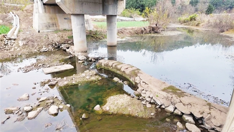 日前,記者實地走訪發(fā)現(xiàn),新建的牛心山橋寬闊平坦,通行條件顯著改善,但橋下河道景象卻與新橋形成鮮明反差:原攔河壩的壩基仍殘留于河床中,河道內(nèi)堆積著大量施工遺留的石塊、淤泥,致使河床被明顯抬高。
