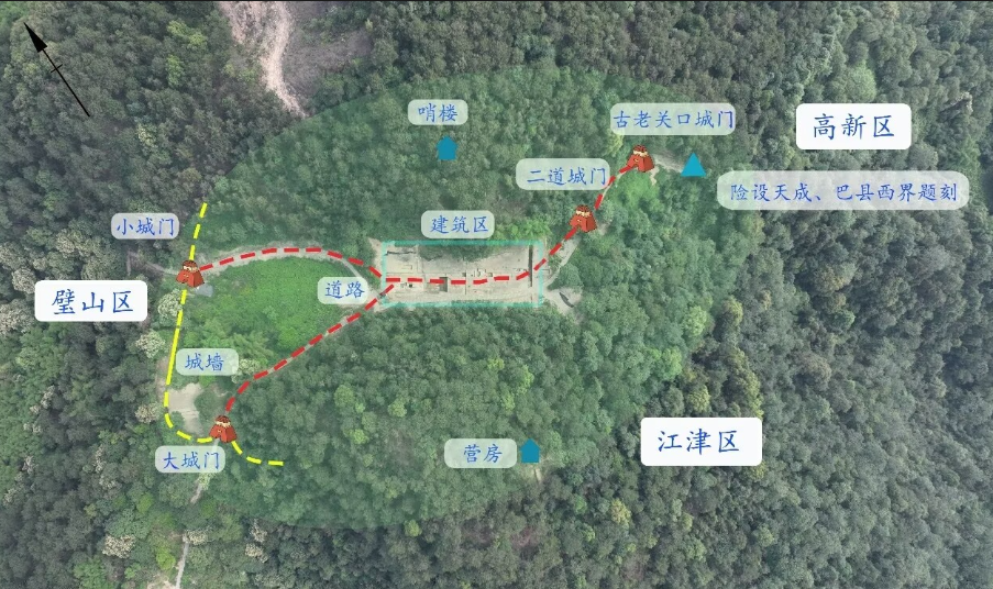 重慶市成渝古道老關(guān)口遺址是集城防、道路及生活設(shè)施為一體的關(guān)隘遺址,是明清時期成渝古道東大路溝通縉云山脈東西兩側(cè)白市驛和來鳳驛重要節(jié)點,對于研究成渝之間的商貿(mào)往來、人群遷徙、文化互動等具有重要意義。
