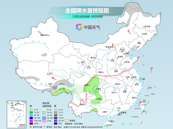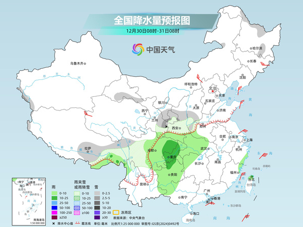 2025年12月30日至2026年1月1日,西藏東部、西北地區(qū)東部、黃淮西部、江漢西部等地部分地區(qū)將有一次明顯雨雪天氣過程,陜西、山西、河南等地部分地區(qū)雨雪混雜。雨雪天氣或影響元旦假期出行,公眾外出需關(guān)注預(yù)警預(yù)報(bào)信息,駕車出行留出安全剎車距離,謹(jǐn)防道路濕滑。