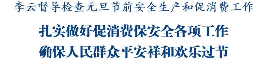 綿陽新聞網(wǎng)訊 12月31日,市委副書記、市長李云前往城區(qū),督導檢查元旦節(jié)前安全生產(chǎn)和促消費工作,強調(diào)要深入學習貫徹習近平總書記關(guān)于促進消費和安全生產(chǎn)的重要論述,按照中央、省委、市委經(jīng)濟工作會議部署要求,更好統(tǒng)籌發(fā)展與安全,扎實做好穩(wěn)增長、促消費、保安全各項工作,確保人民群眾平安祥和歡樂過節(jié)。