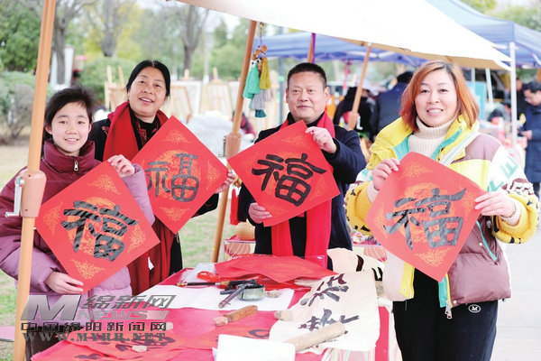 在仙海新春廟會上,市民游客書寫福字,感受傳統(tǒng)文化魅力。