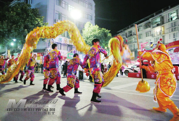 平武街頭舉行熱鬧的民俗巡游活動,隨著巨龍舞動,祈福新年萬事順?biāo)臁?/p>