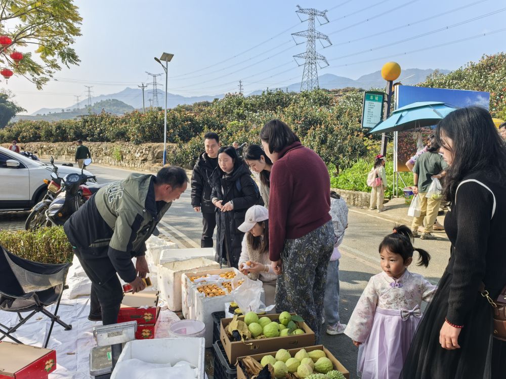 2月2日,游客在龍華村購(gòu)買水果。新華社記者李倩薇 攝