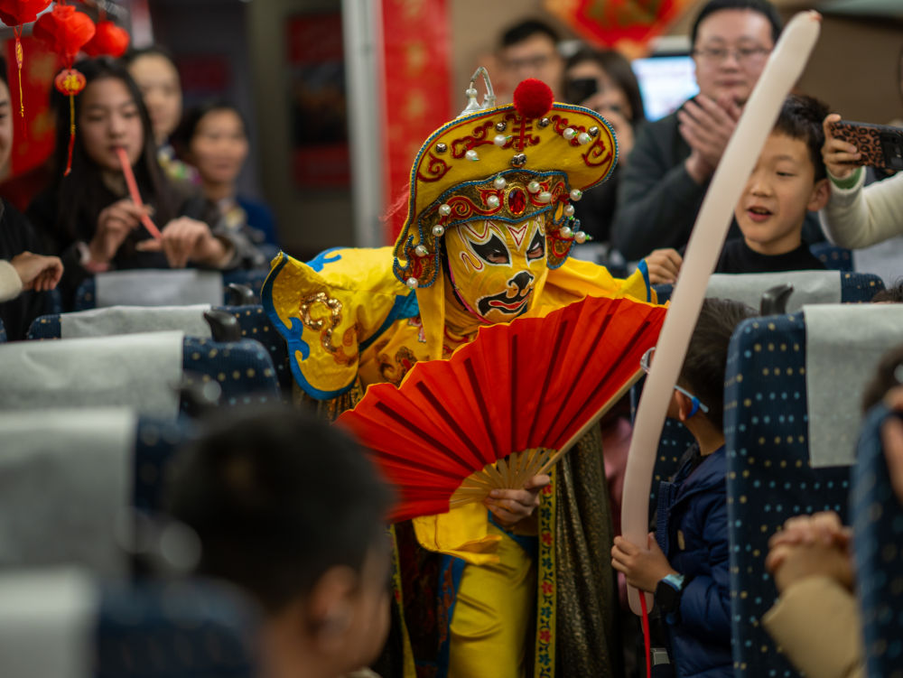 1月29日,“高鐵游九寨 蛇年啟新篇”主題旅游列車帶領(lǐng)游客冬游九寨。(孟寬 攝)