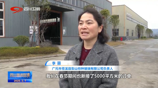 廣元市蒼溪縣梨山特種玻璃有限公司負責人 李麗:我們在春節(jié)期間也新接了5000平方米的訂單。還將通過持續(xù)地創(chuàng)新投入,提早謀劃抓生產(chǎn),打好沖刺戰(zhàn)。