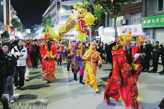 夜幕下,平武風(fēng)情大型巡游隆重上演,鑼鼓隊、曹蓋隊、民族隊、牦牛隊、熒光舞獅隊、舞龍隊等組成的巡游隊伍載歌載舞,市民游客自發(fā)加入,形成萬人共慶的盛景。“太熱鬧了,這才叫過年!”來自成都的游客周先生高興地說,活動非常豐富,在感受本地民俗文化中過年,很有意義。
