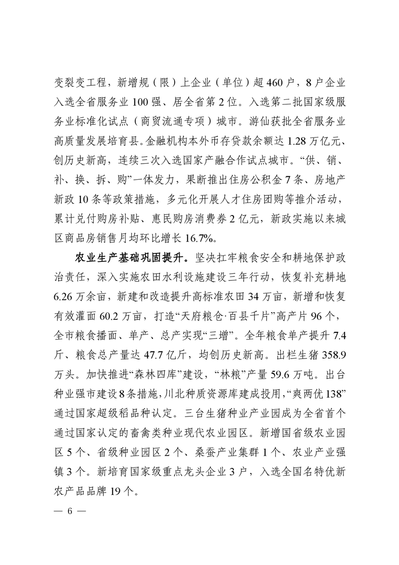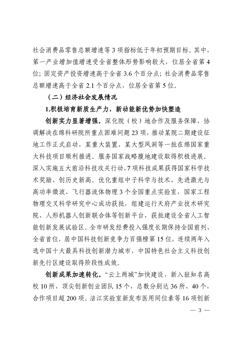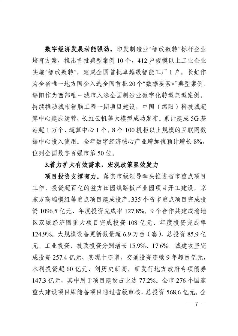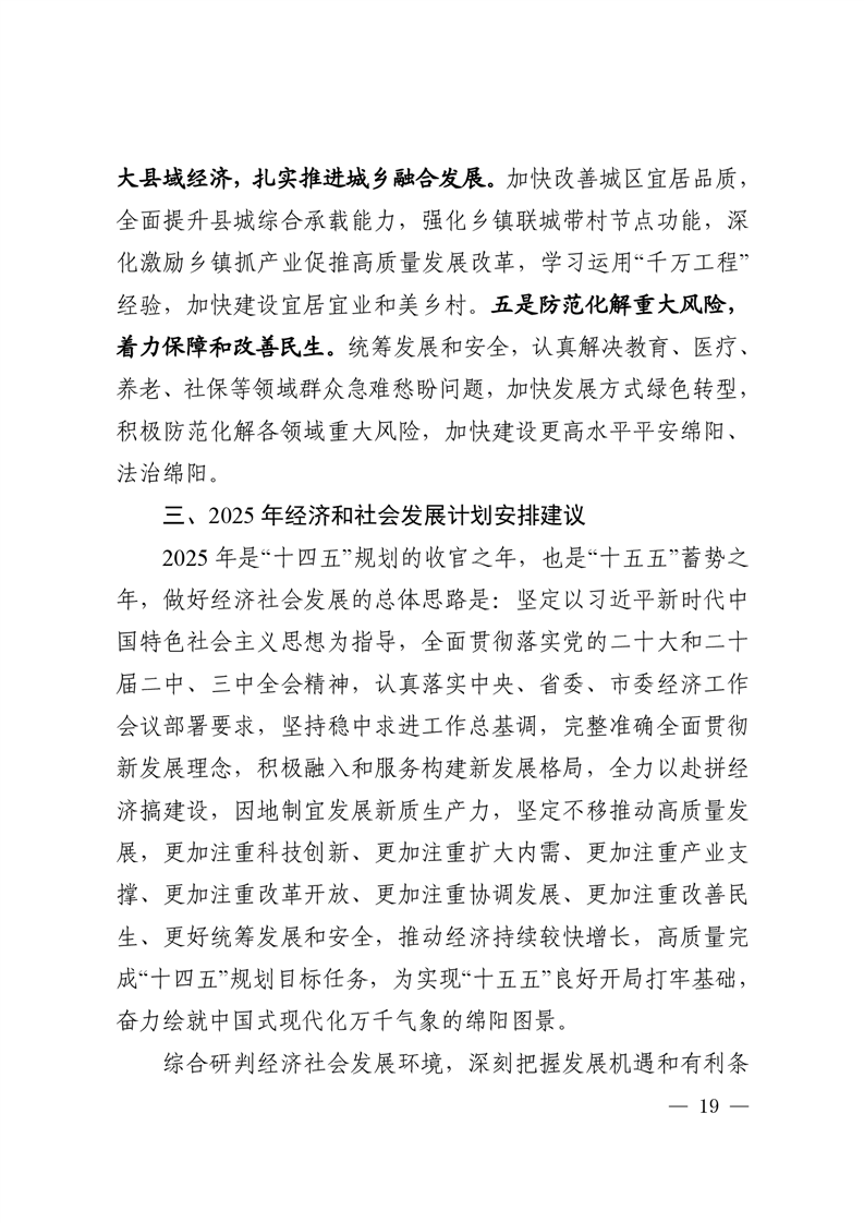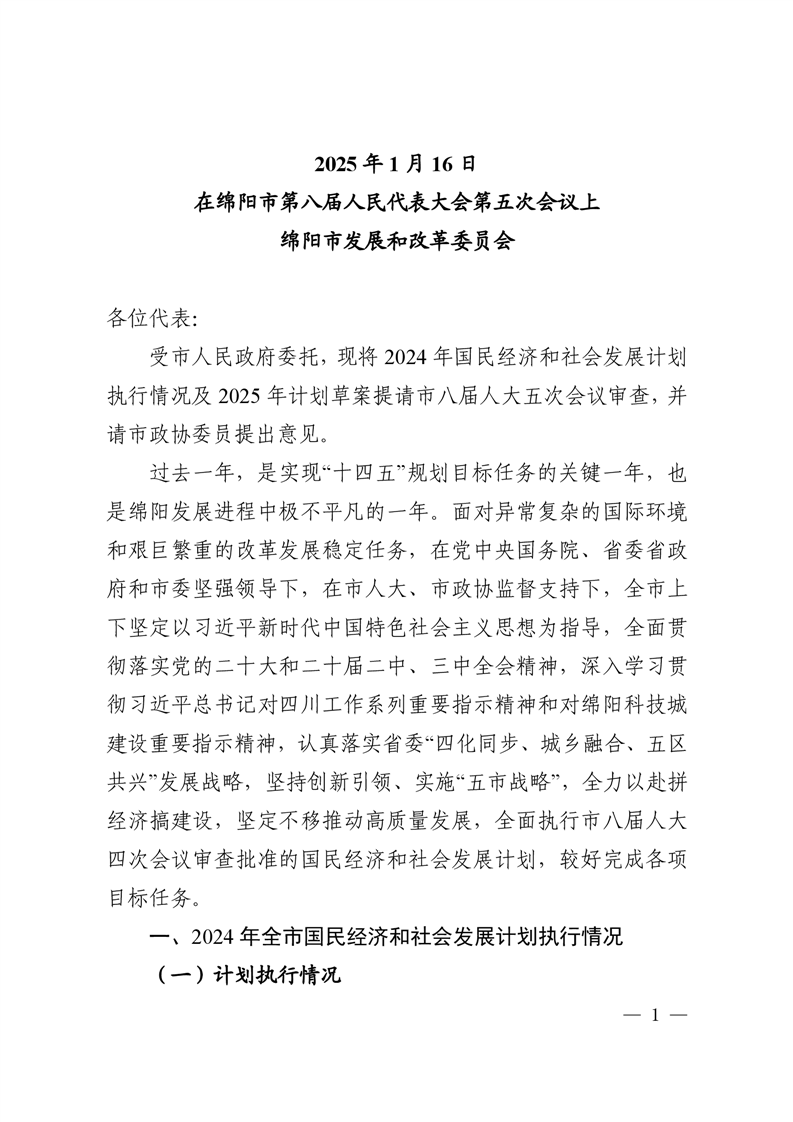 關(guān)于綿陽市2024年國民經(jīng)濟和社會發(fā)展計劃 執(zhí)行情況及2025年計劃草案的報告(書面)