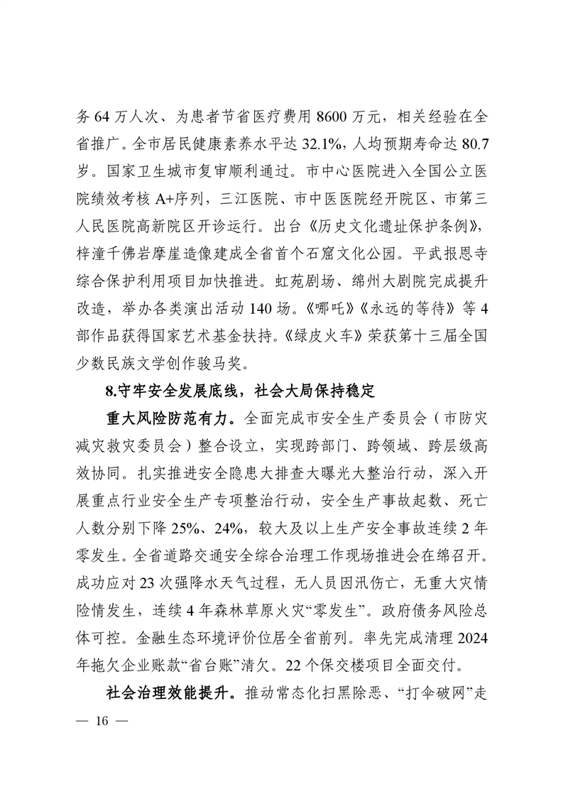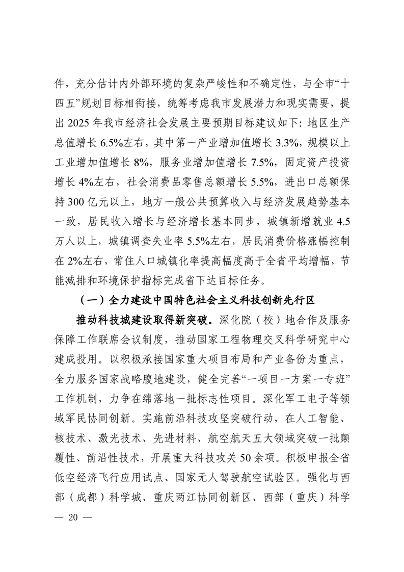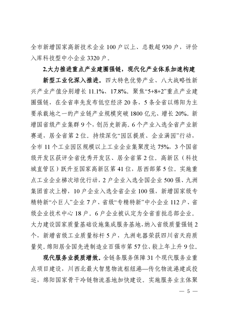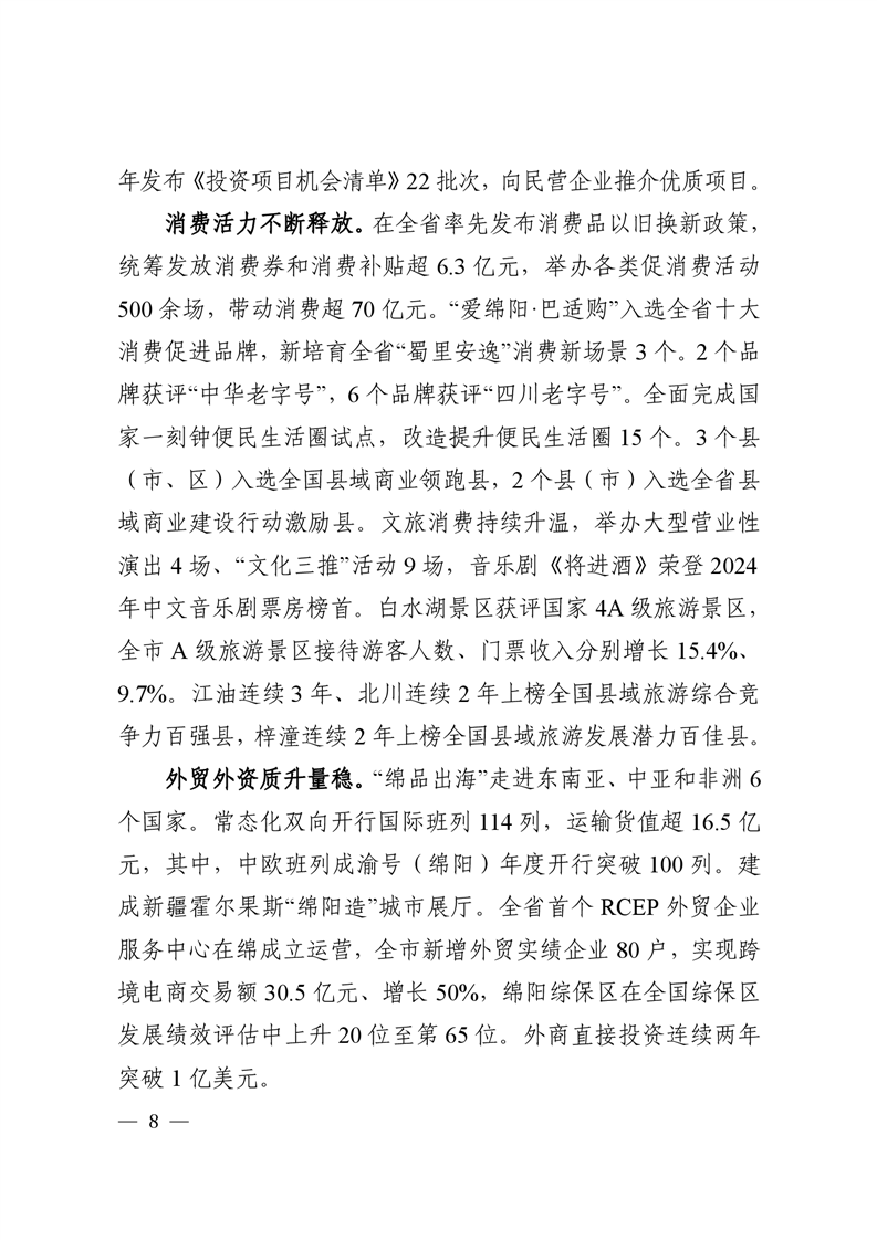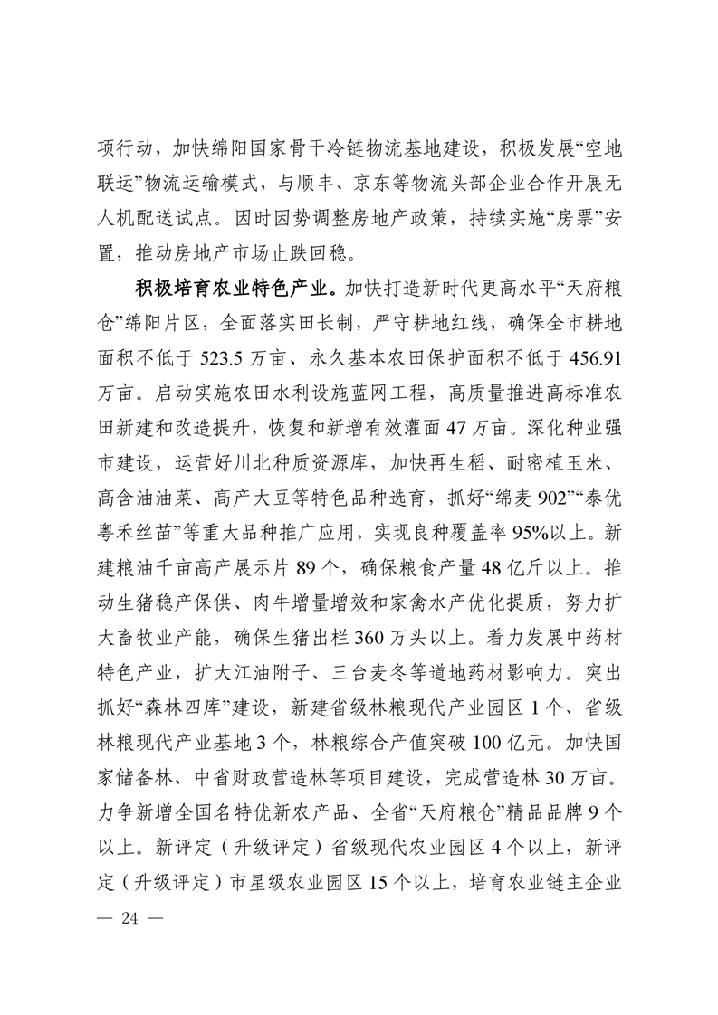 關(guān)于綿陽市2024年國民經(jīng)濟和社會發(fā)展計劃 執(zhí)行情況及2025年計劃草案的報告(書面)
