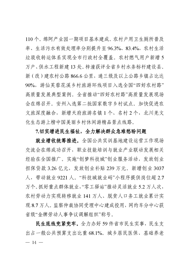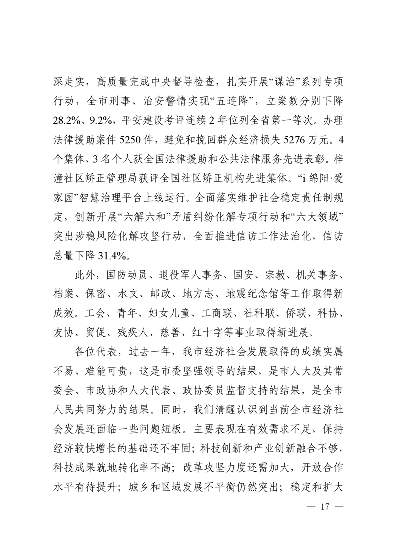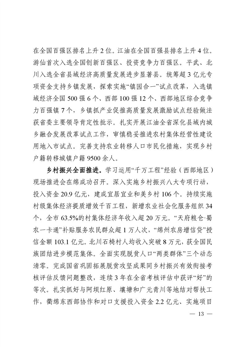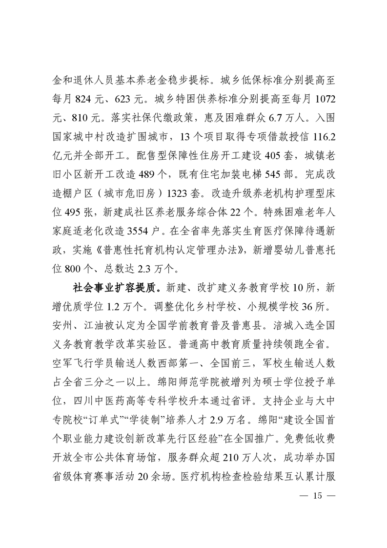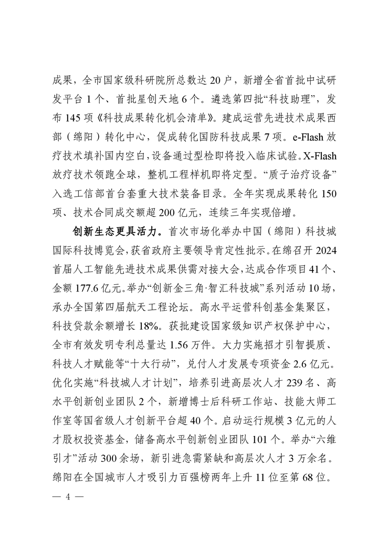 關(guān)于綿陽市2024年國民經(jīng)濟和社會發(fā)展計劃 執(zhí)行情況及2025年計劃草案的報告(書面)