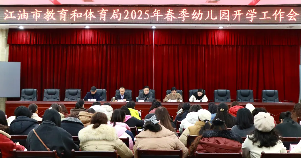 2月13日,江油市教體局召開了2025年春季幼兒園開學(xué)工作會(huì)。會(huì)議全面總結(jié)了2024年學(xué)前教育各項(xiàng)工作,并對(duì)2025年春季學(xué)期幼兒園園所安全、經(jīng)費(fèi)管理、衛(wèi)生保健及學(xué)前教育等重點(diǎn)工作作出安排。