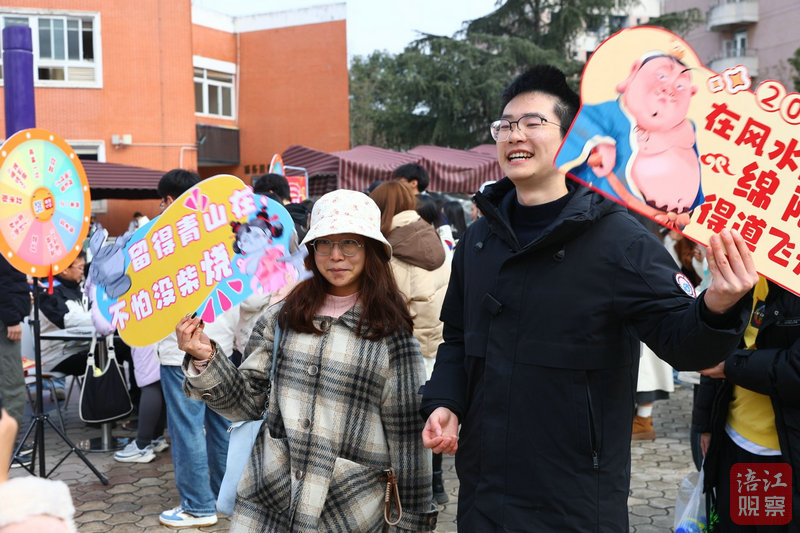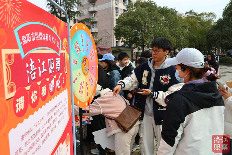 在他身后,隊(duì)伍中不斷傳來(lái)類似的歡呼聲。“我抽到的是爆米花!”“百分百中獎(jiǎng)率,也太實(shí)在了!”廣場(chǎng)上,掃碼立牌、大轉(zhuǎn)盤都被圍得水泄不通,數(shù)位涪江觀察工作人員穿梭其間,引領(lǐng)學(xué)生們排隊(duì)抽獎(jiǎng)。