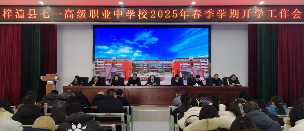 2月15日,梓潼縣“七一”高級職業(yè)中學(xué)校召開了以“新學(xué)期 新征程 共筑職教輝煌”為主題的2025年春季學(xué)期開學(xué)工作會議,為新學(xué)期的工作拉開帷幕,吹響奮進(jìn)的號角。