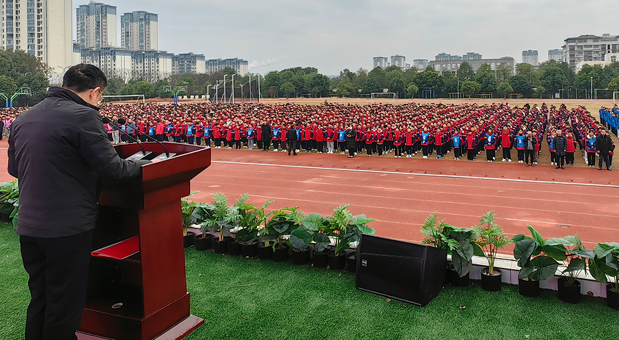 文昌中學黨委副書記、校長李楊為新學期致辭,他回顧了上一學期學校在各領(lǐng)域取得的突破性成績,并寄語全體學子:做“眼底有山河”的思考者,做“手上有力量”的行動者,做“心中有溫度”的追光者。