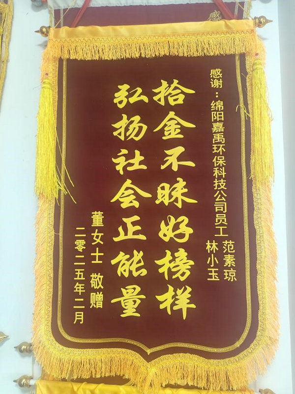 在嘉禹環(huán)保,表達(dá)感謝的錦旗,掛滿了一墻,正能量的好人好事,接連在嘉禹環(huán)保涌現(xiàn)。
