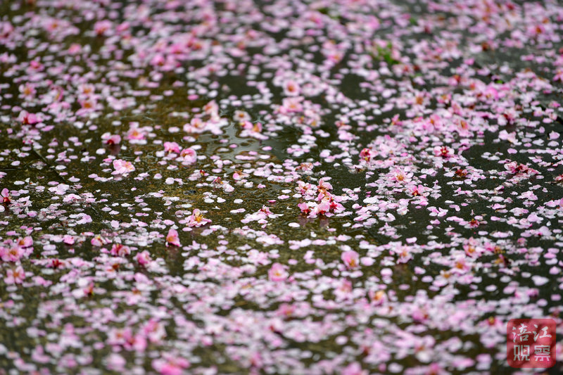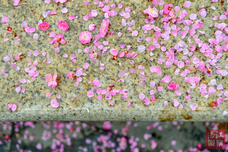 春雨不經(jīng)意打落了一樹梅花,粉色的花瓣緩緩飄落,為這幅春日畫卷增添了幾分詩(shī)意與浪漫。