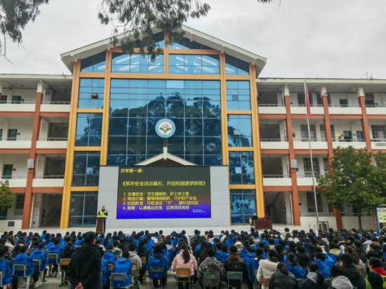 開學(xué)典禮上,觀義派出所民警、法治副校長白國洪開展了《筑牢安全法治基石 開啟校園逐夢新程》的專題講座,他結(jié)合假期最火熱的電影《哪吒2》和人工智能Deepseek,圍繞交通安全、電信詐騙、校園欺凌、禁毒等內(nèi)容,通過互動(dòng)問答、以案說法等形式,向?qū)W生們普及相關(guān)法律法規(guī)和安全防范知識(shí),為廣大師生開展了安全教育第一課。