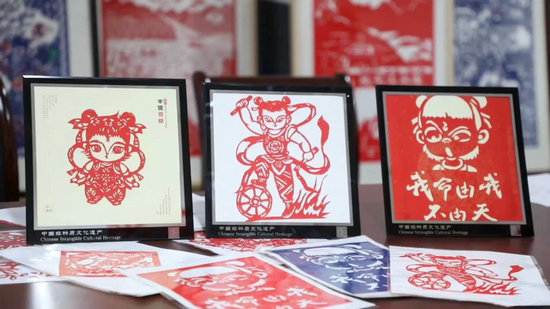 益陽市非物質(zhì)文化剪紙技藝代表性傳承人莫雪芬將傳統(tǒng)手藝與“哪吒”相結合,為電影中多個角色創(chuàng)作了剪紙形象。
